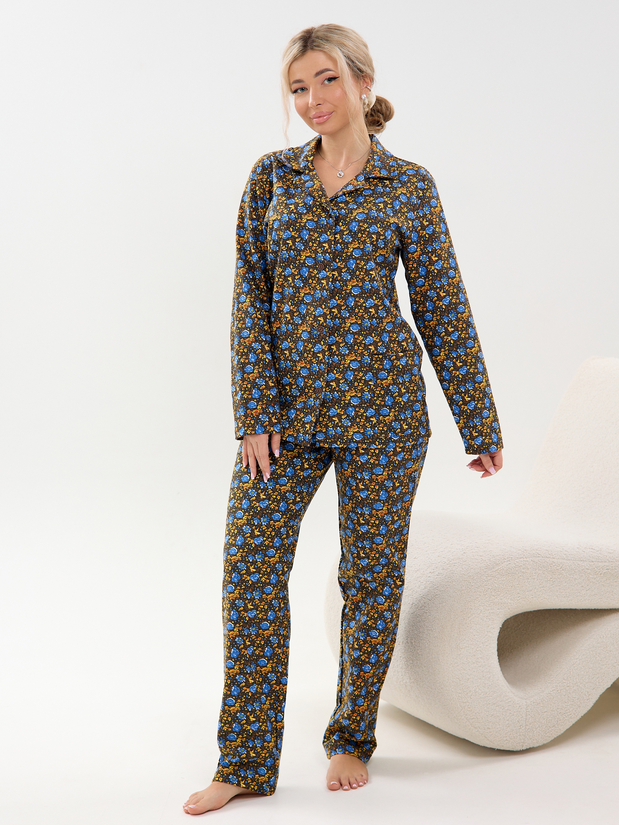 Комплект для сна имеет красивый принт, который подойдет любой женщине, девушке и создаст прекрасное настроение перед сном. Приятные и мягкие штаны и рубашка на пуговицах из фланели сохраняют тепло и позволяют телу дышать. Комплект фланелевый байковый подходит для высокого и невысокого роста благодаря свободному крою и большим размерам, позволяет свободно двигаться и чувствовать себя комфортно в любом положении.